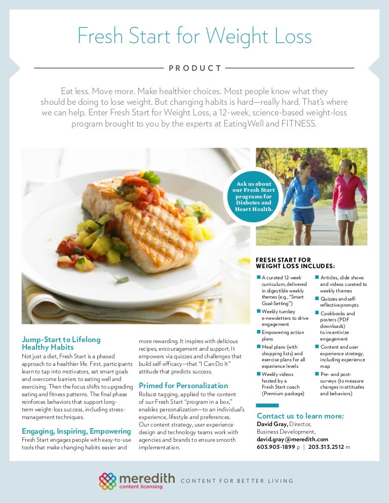 Fresh Start Diet Program Fresh Start Diet Program : Let us help you to reach your goal of looking and feeling great.