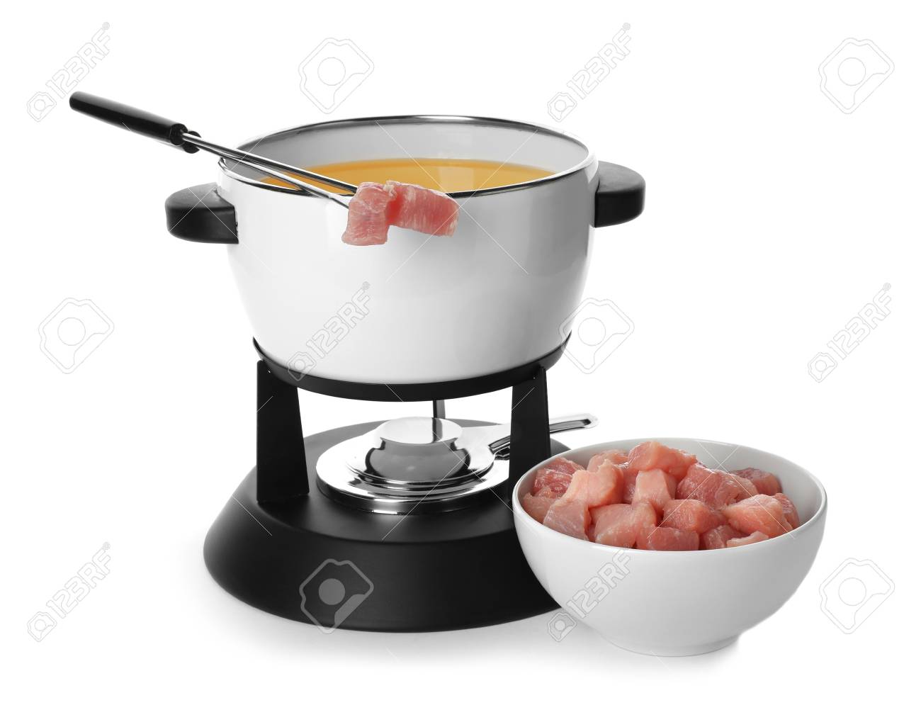 Fondue Pot With Oil And Raw Meat On White Background Stock Photo Picture And Royalty Free Image Image 117038765 - Download meat fondue stock photos.